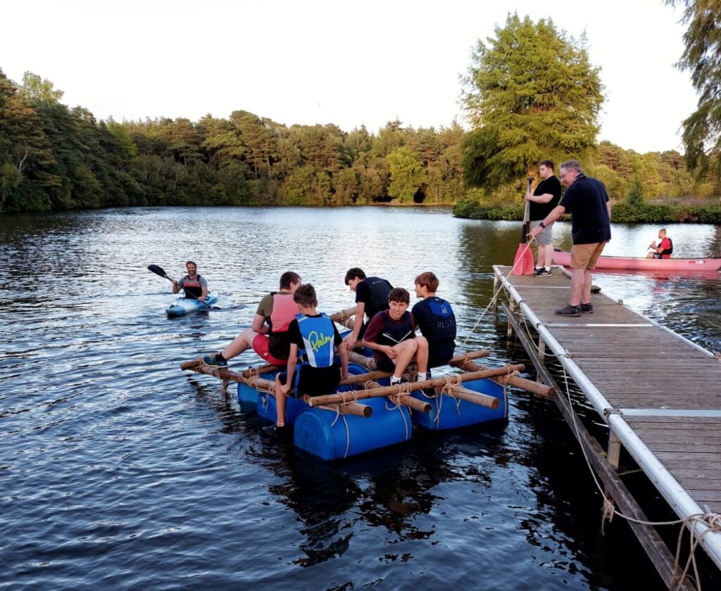 For the final meeting of the summer term Yateley Explorers decided to take to the water, cool off and chill out. Hawley Lake was the venue and the ‘teams’ had a set time to make, launch and race their homemade rafts.